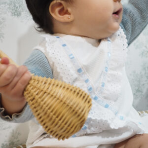Un babero ideal para cualquier ocasión, atemporal, bonito y con rizo por la parte de dentro para mantener siempre seco al bebé, puede pasar perfectamente por un accesorio de su ropita de lo bonito que resulta. Gracias por mantener las tradiciones.