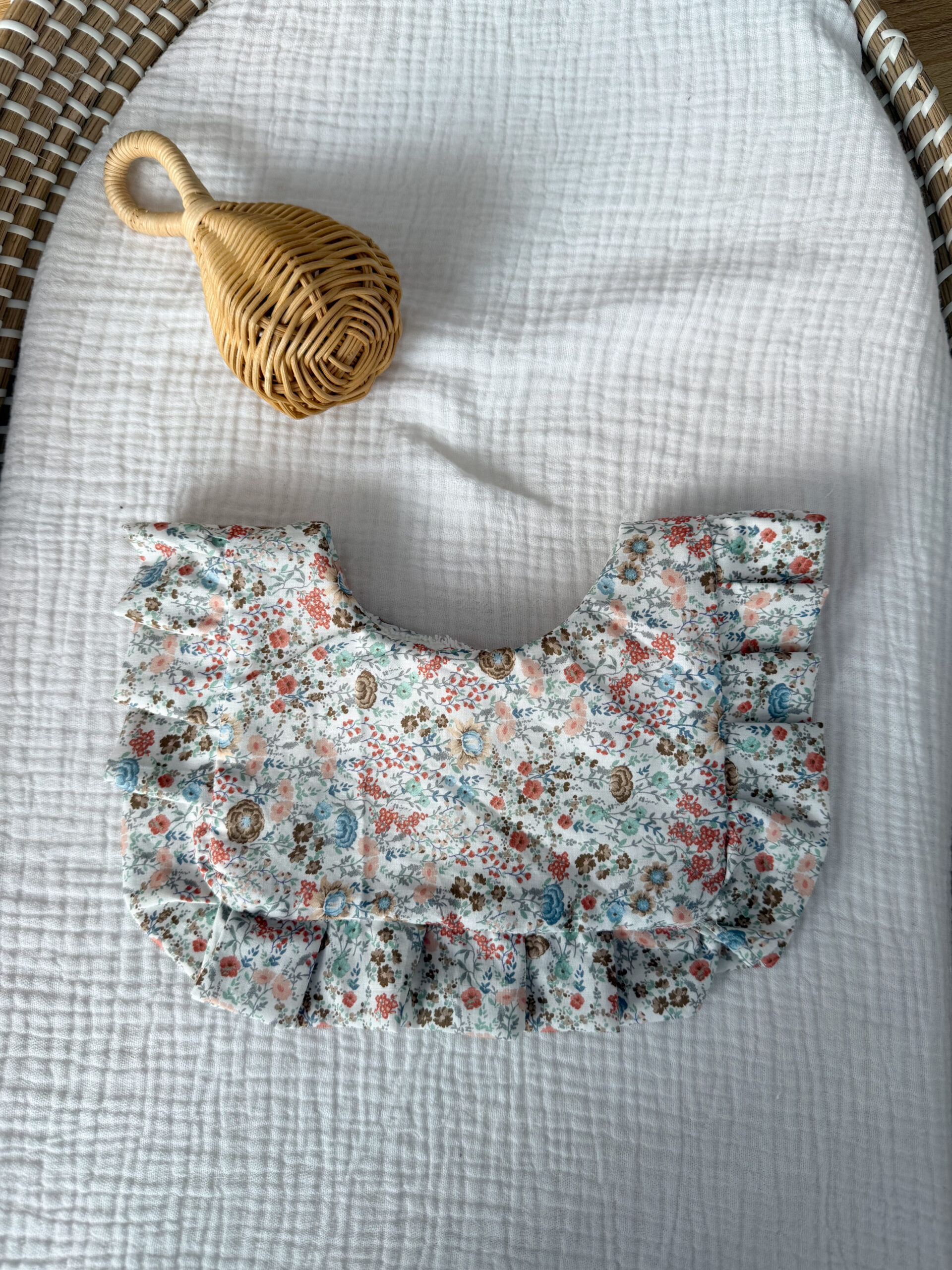 Baberola con rizo 100% algodón en la parte interior se ata con lazos en los lados y en la parte trasera