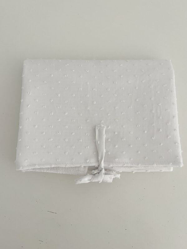 Planchas con paño por encima para no dañar la tira bordada y el lazo