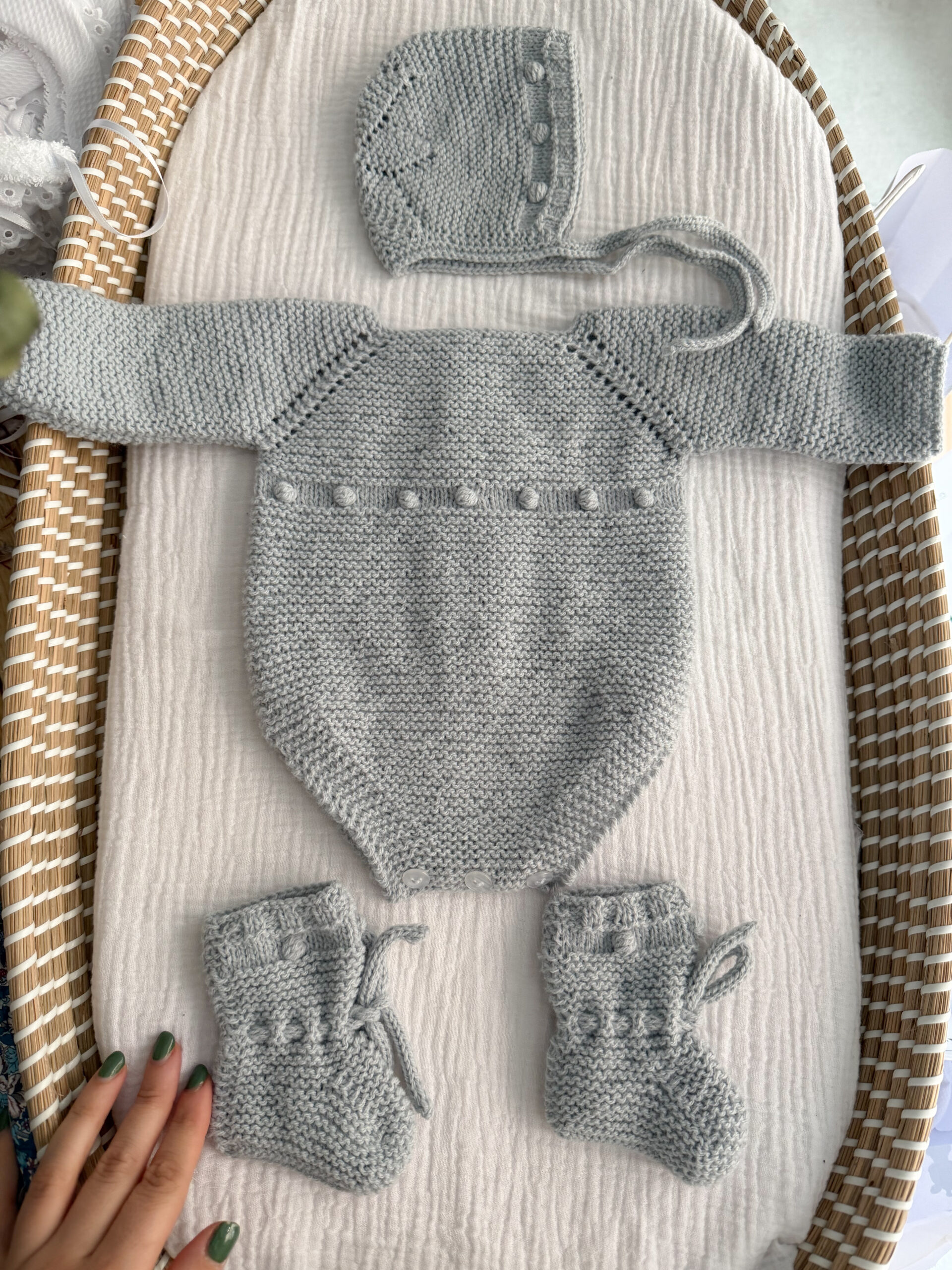 Conjunto bodoques lana gris perla