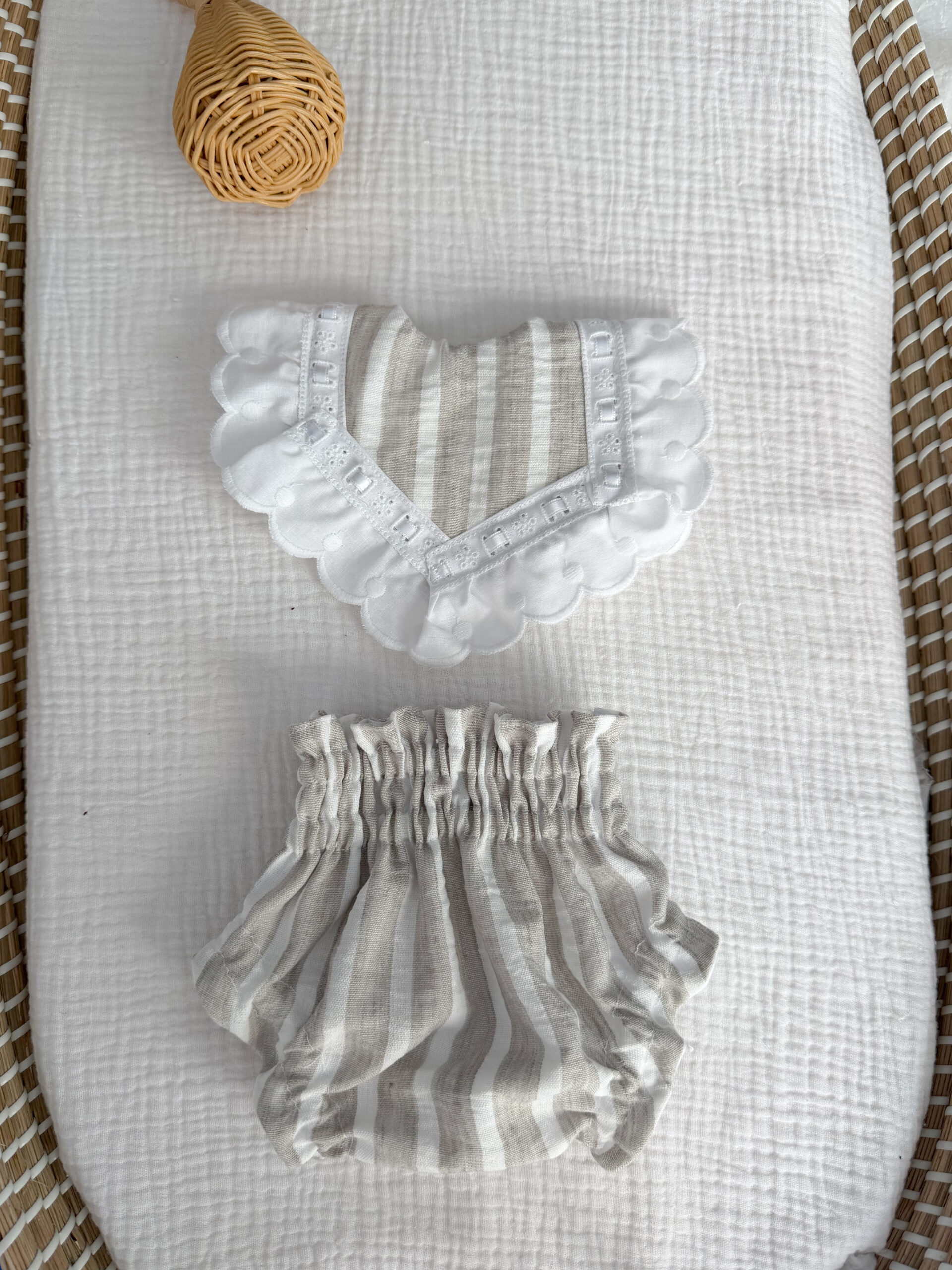 Cubrepañal rayas arena clara