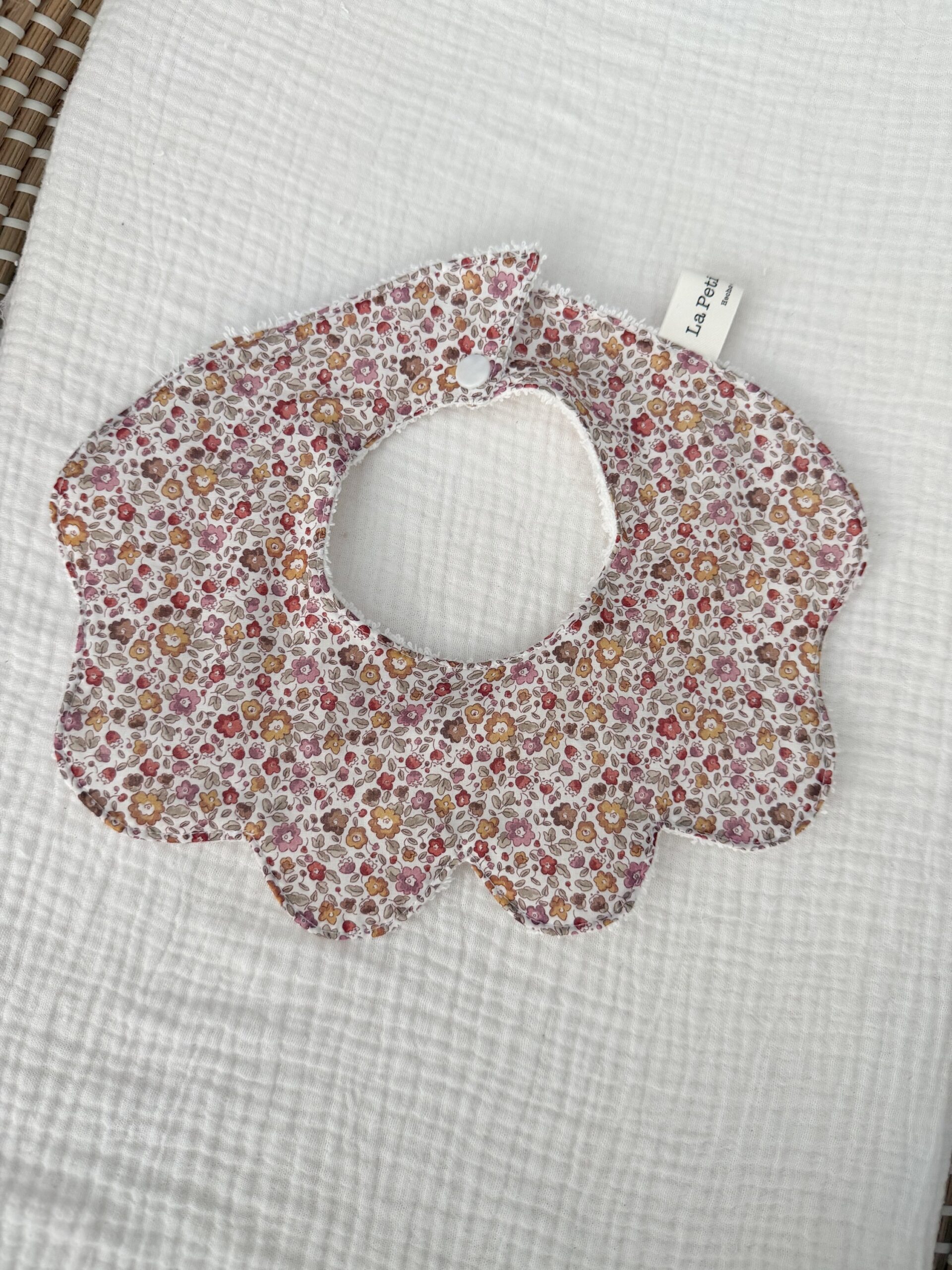 Babero de algodón con rizo en la parte posterior de muy buena calidad que evita que se moje la ropa.