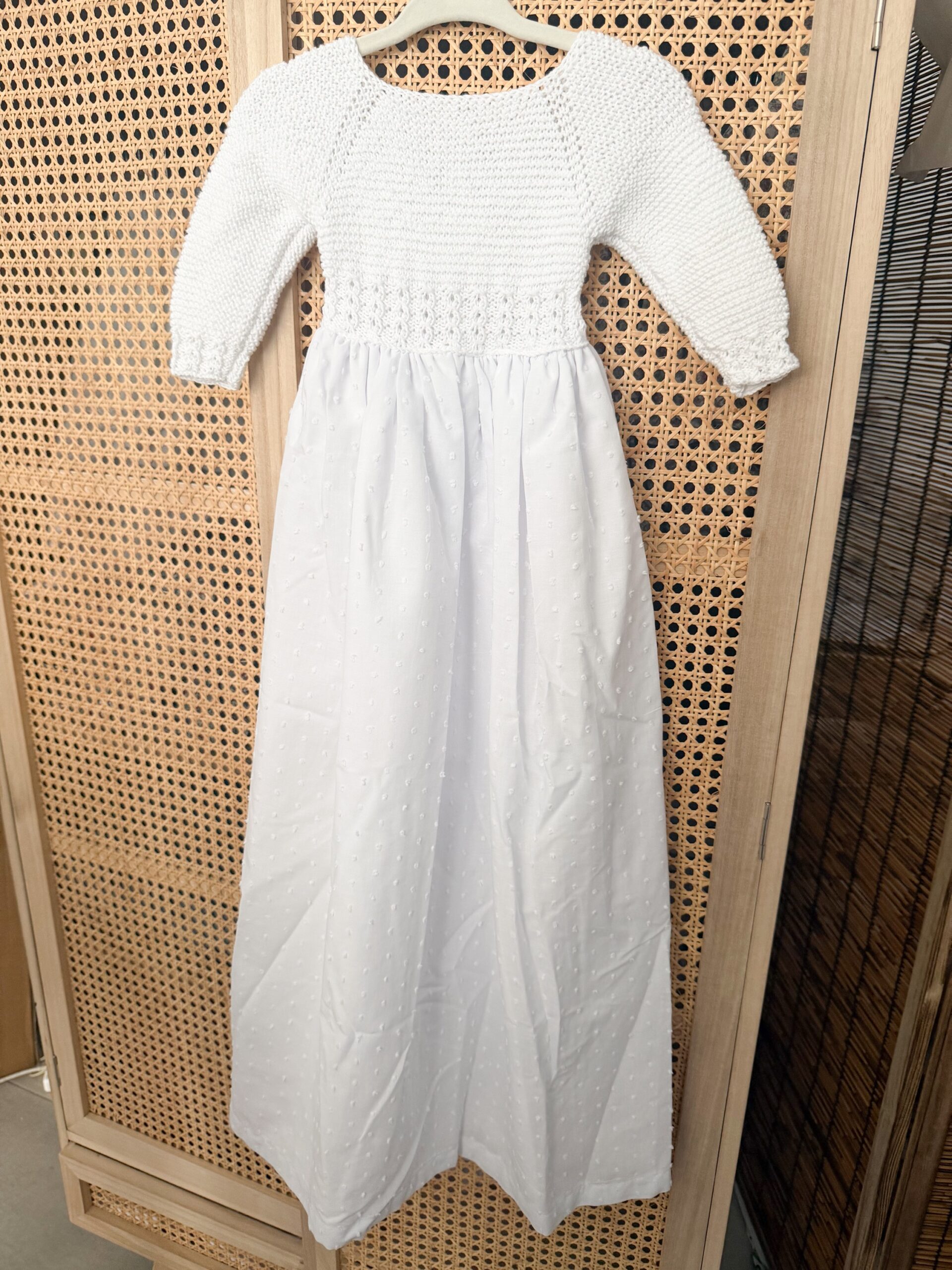 Se puede lavar en lavadora, planchar con cuidado y evitando la tira bordada