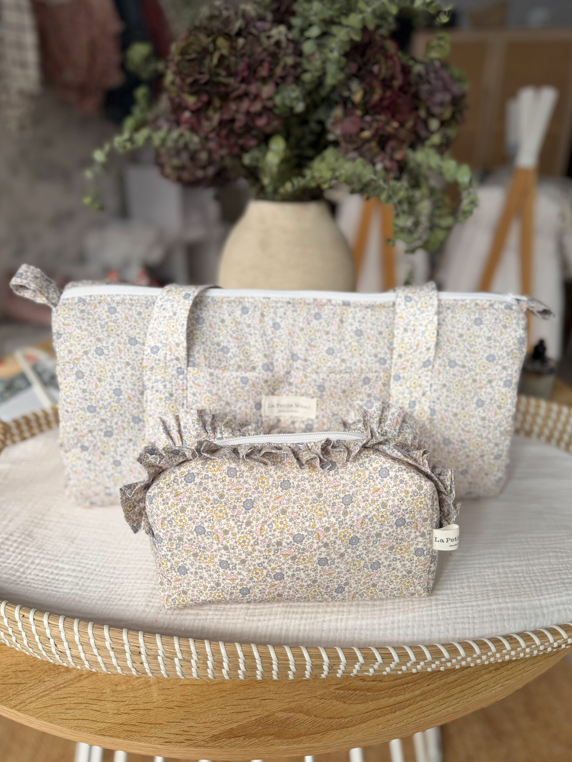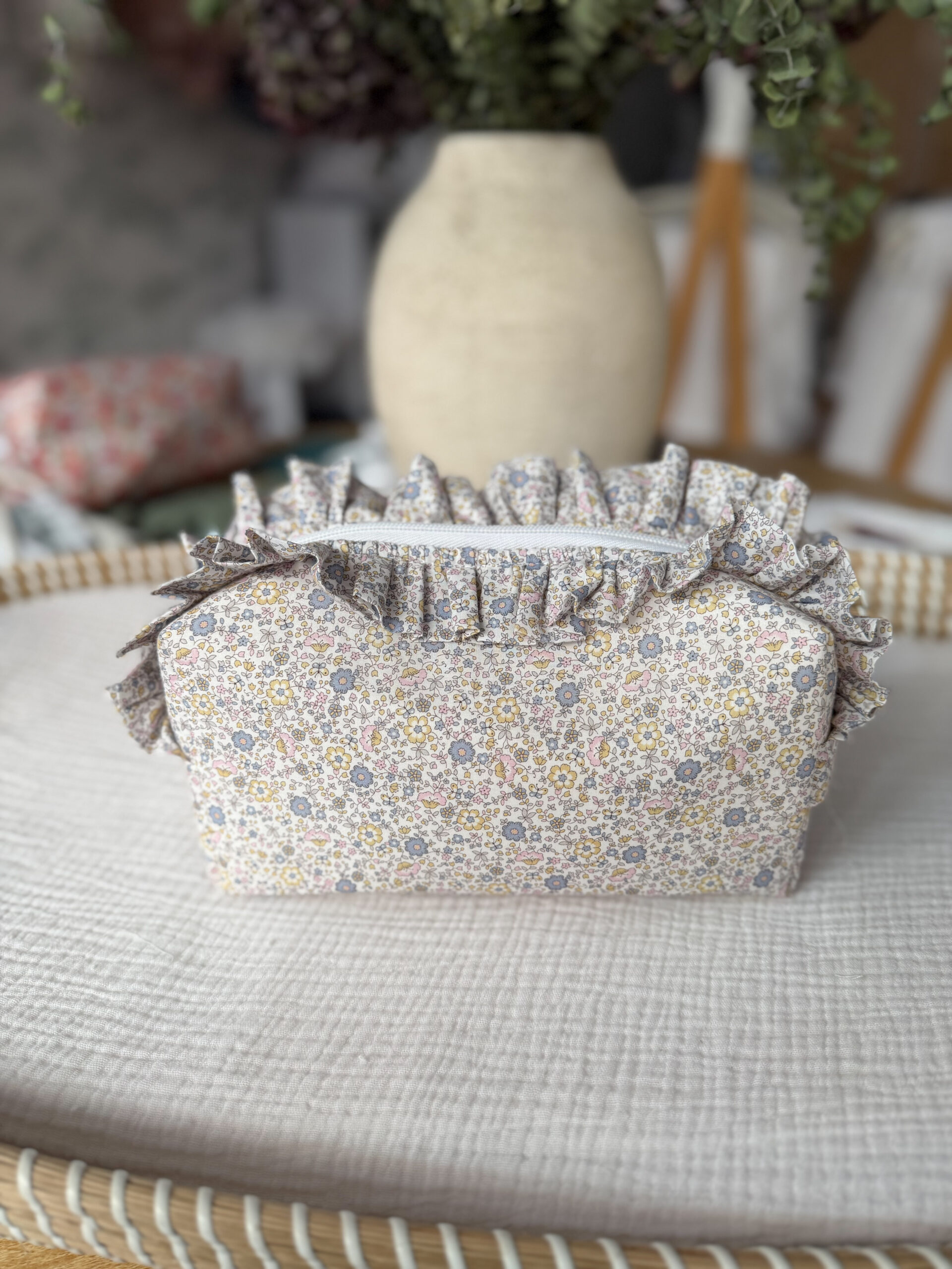 Neceser de algodón 100% acolchado, con forro en el interior y asa para agarrar.