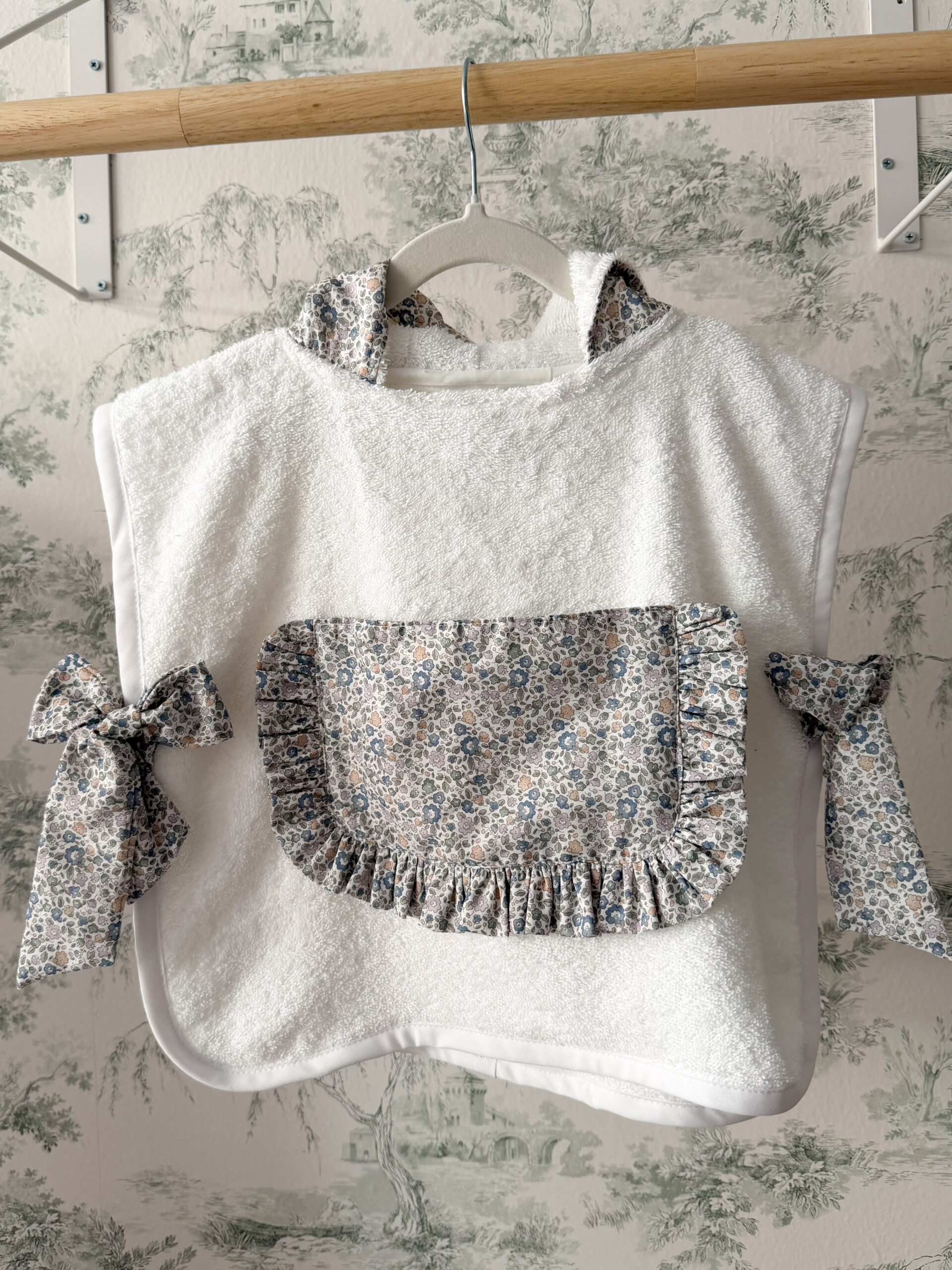 Poncho de playa flor azul pastel volante