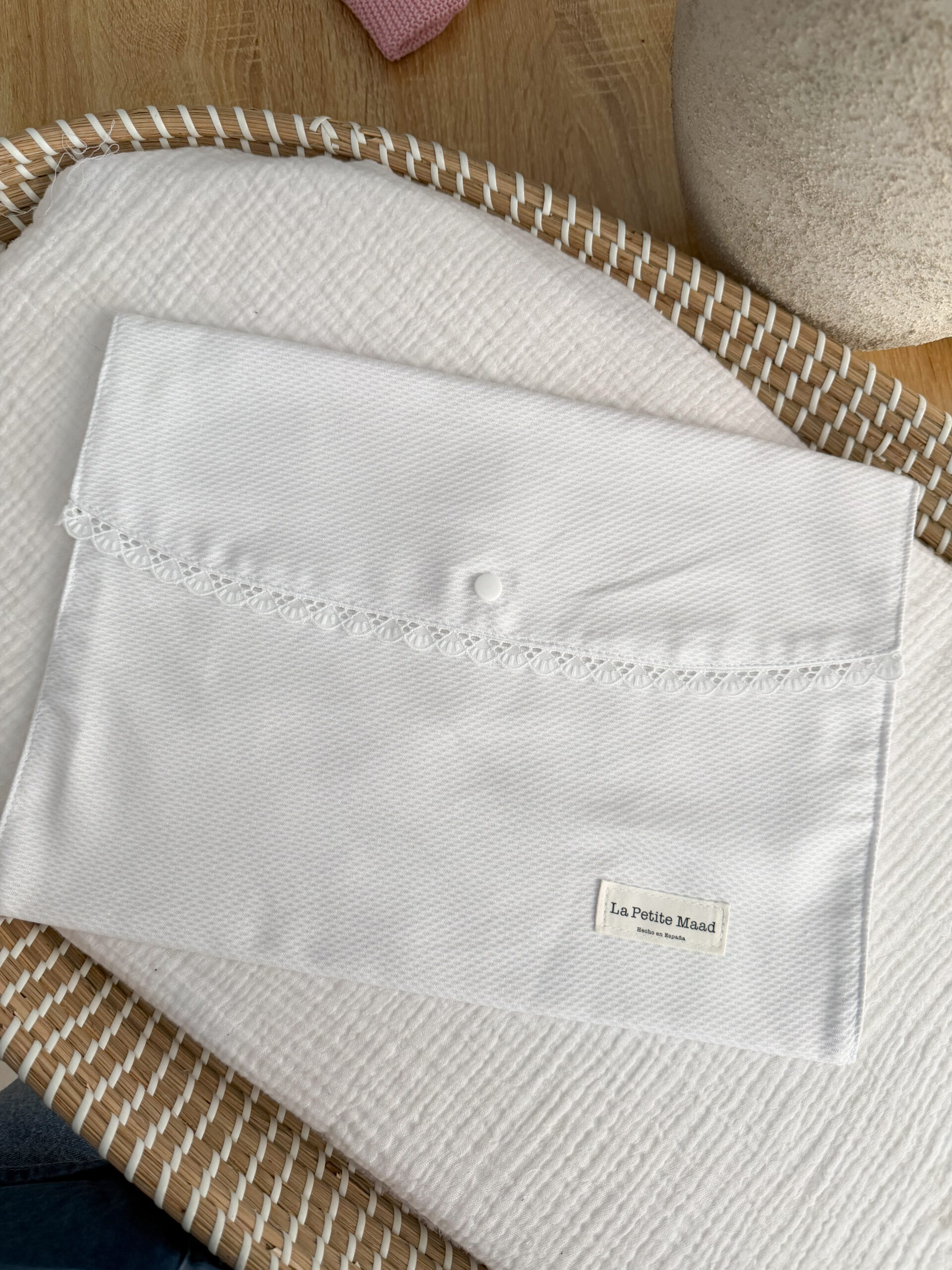 Bolsa de muda con cierre de botón. Van forradas y sus medidas son de 35x25cm.