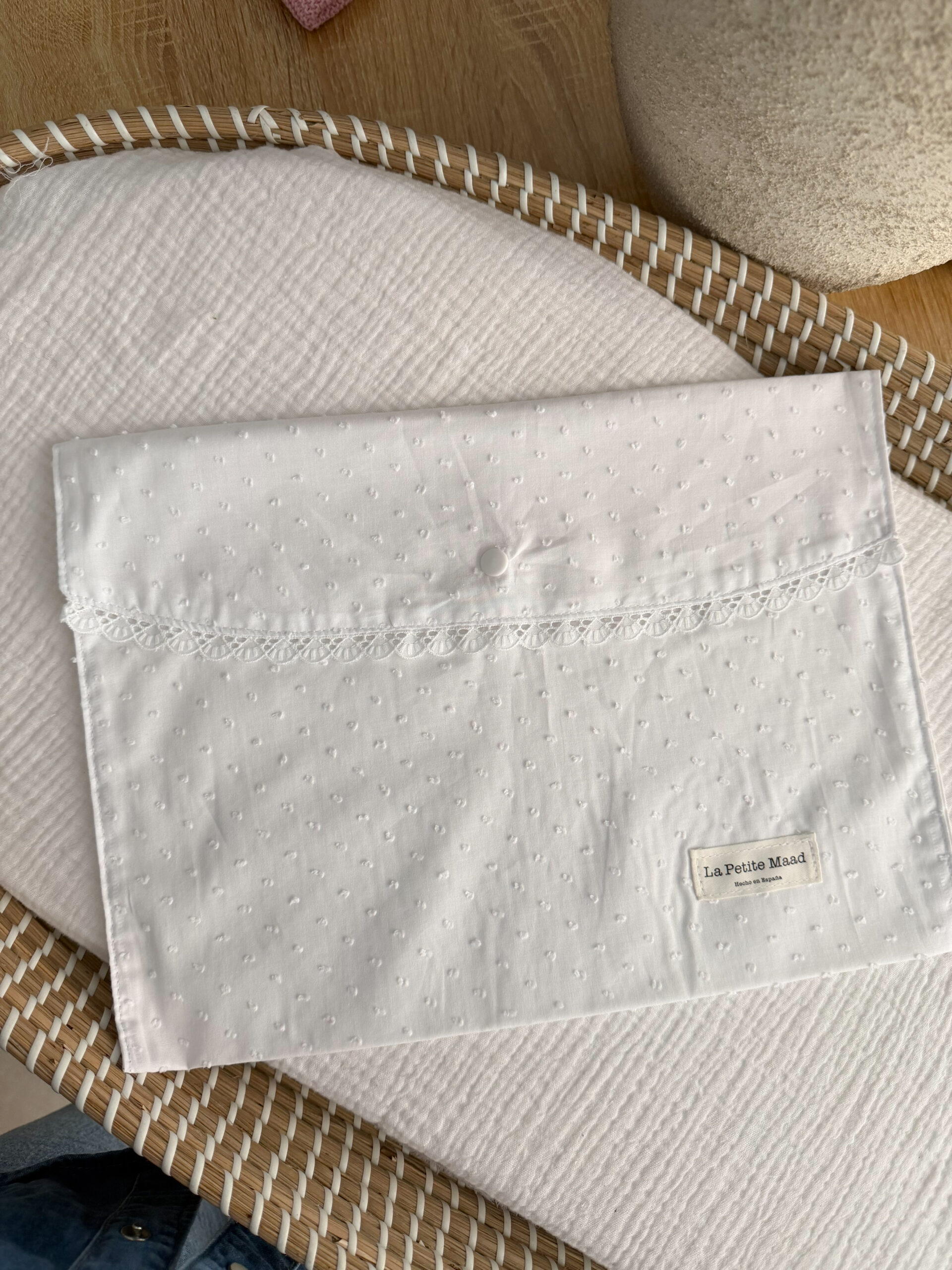 Bolsa de muda con cierre de botón. Van forradas y sus medidas son de 35x25cm.